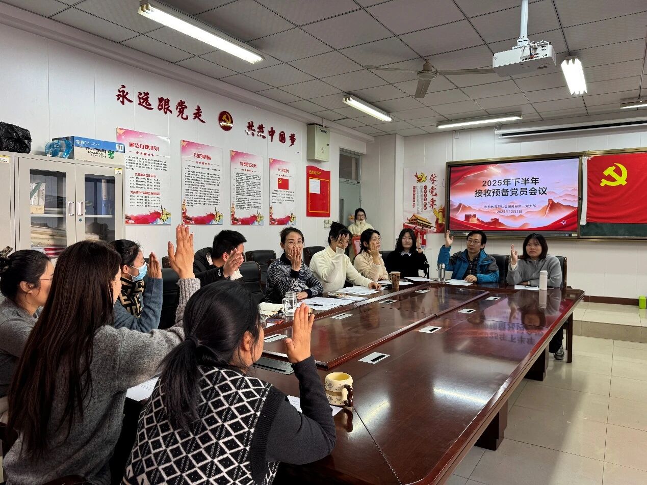 根据发展党员工作要求,经征求党员和群众意见、支部委员会审查同意,2025年12月2日,学前教育与社会服务系第一党支部在B301室召开了2025年下半年接收预备党员会议。