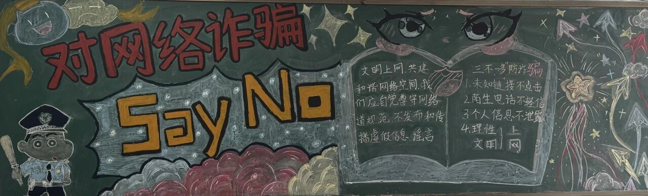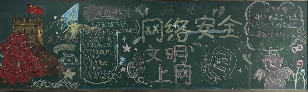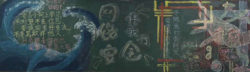 在黑板报创作环节,大家精心构思版面设计,巧妙搭配色彩,将对网络安全的认知与思考深度融入作品之中。每一幅黑板报都凝聚着同学们的智慧与心血,不仅展现出较高的艺术水准,更营造出浓厚的网络安全宣传氛围。