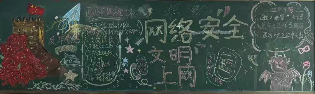 活动过程中,各班级积极响应,同学们紧扣“网络安全”主题,广泛搜集网络诈骗案例、个人信息保护方法及文明上网规范等相关知识。在黑板报创作环节,大家精心构思版面设计,巧妙搭配色彩,将对网络安全的认知与思考深度融入作品之中。每一幅黑板报都凝聚着同学们的智慧与心血,不仅展现出较高的艺术水准,更营造出浓厚的网络安全宣传氛围。