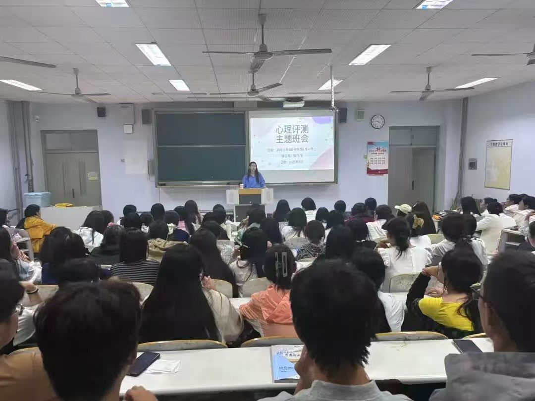 班会上,辅导员老师从心理测评的多方面重要性展开讲解。心理测评是学校心理健康教育工作的关键环节,它能科学评估新生的心理状态,帮助同学们清晰认识自身情绪、性格与压力应对模式;更是心理危机预防的重要手段,通过专业测评可及时发现潜在心理困扰,为后续精准开展心理帮扶、心理疏导奠定基础,让同学们在大学伊始就能获得针对性的心理支持。同时,班会明确提出心理测评参与率需实现100%的目标,各班级辅导员精心统筹组织,新生们也以严谨认真的态度积极投入其中。