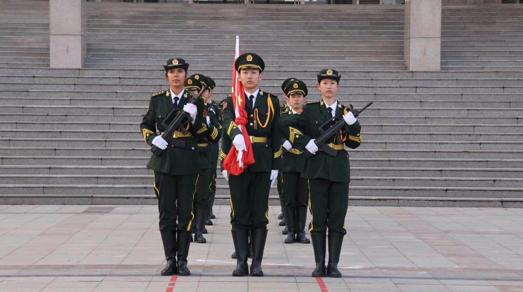 七点十分,升旗仪式准点启幕。国旗护卫队的成员们踏着整齐划一的步伐步入广场,利落的脚步声中,全场瞬间静立。当激昂的《义勇军进行曲》响彻耳畔,升旗手展旗的动作划破晨空,鲜艳的五星红旗便顺着晨光的方向,稳稳地向旗杆顶端舒展升起。