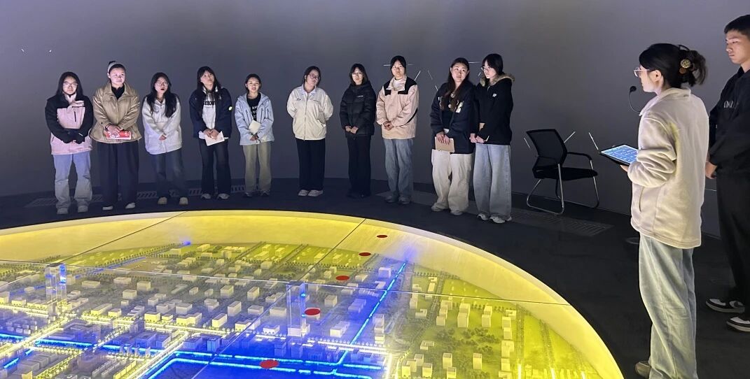 在参观过程中,我系师生体验了基地的王牌模块:在球幕影院,巨幕光影将数字技术原理生动具象化,让抽象知识“跃然眼前”;低空经济展厅里,无人机巡航模拟、智能空域管理演示,直观呈现科技对产业的重塑力量;无人机实训区,学生们在专业指导下操控设备,亲手实践飞行力学与编程逻辑;机器狗互动区,与智能机械的趣味互动,让“人工智能赋能生活”从书本概念变为真切感知;而VR体验舱中,沉浸式技术带大家“穿梭”于虚拟工业场景,零距离感受数字技术的应用魅力。