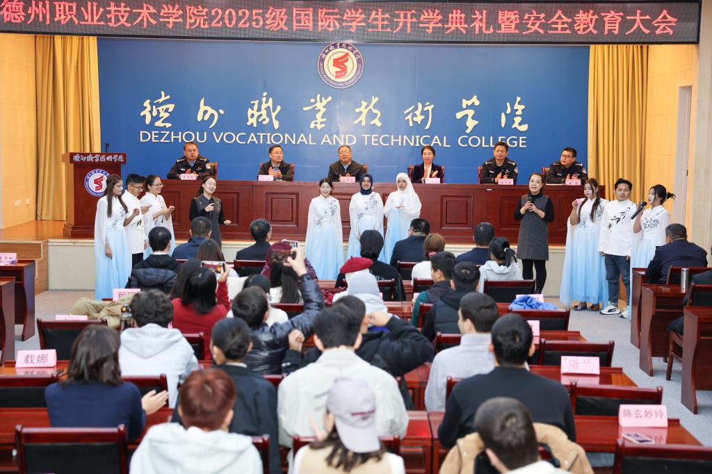 10月30日,我校留学生开学典礼在润德楼二楼会议室圆满举行。来自全球十二个国家的留学生们齐聚一堂,带着对未来的憧憬与期待,正式开启在我校的求学之旅。德州职业技术学院院长孟繁营、副院长刘文娟,学前教育与社会服务系主任王东霞及留学生师生代表共同出席典礼,用热忱与关怀为国际学子送上“第一份校园温暖”。开学典礼由副院长刘文娟主持。