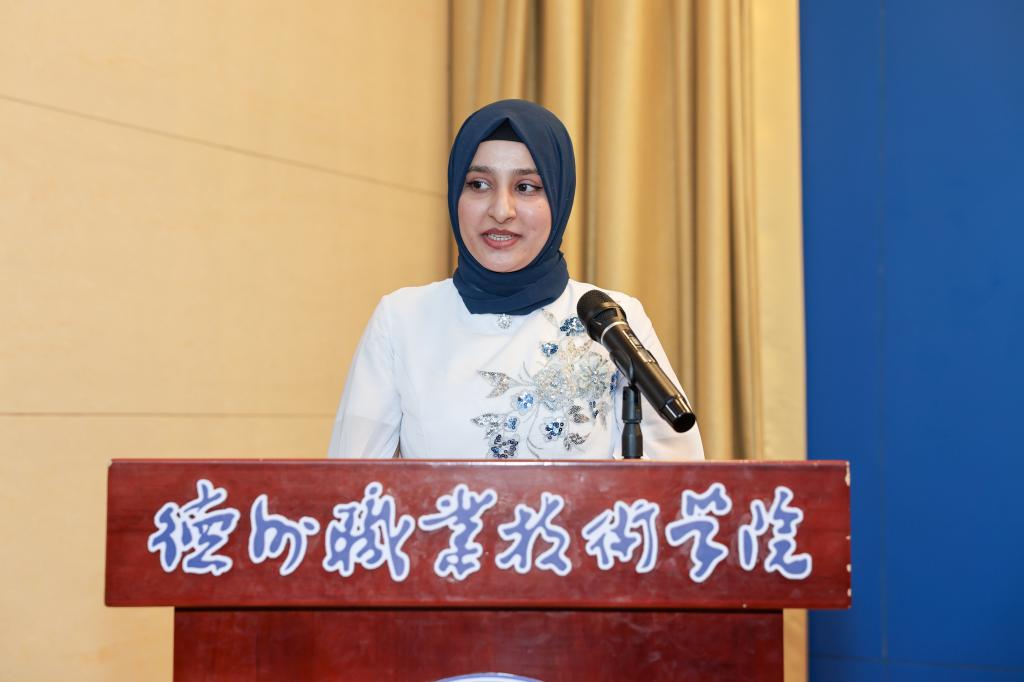 随后,学前教育与社会服务系留学生班主任吴迪分享了系部为留学生搭建的成长支持体系,从专属导师帮扶、多语种服务保障到丰富的校园文化活动,全方位助力国际学子快速适应校园生活、融入学习氛围。这里不仅是学习知识的地方,更是留学生们感受多元文化、结识志同道合伙伴的家园。班主任的话语充满温度,让现场留学生倍感亲切。