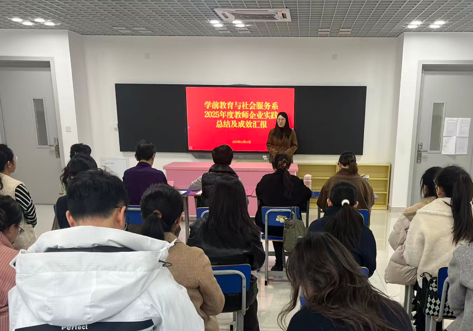 为深化产教融合、提升教师实践教学能力,2025年11月13日下午,学前教育与社会服务系在启智楼SE-304召开2025年度教师企业实践总结及成效汇报会。学前教育与社会服务系主任王东霞及全体教师参加会议,共同复盘实践成果,共谋教学发展新路径。