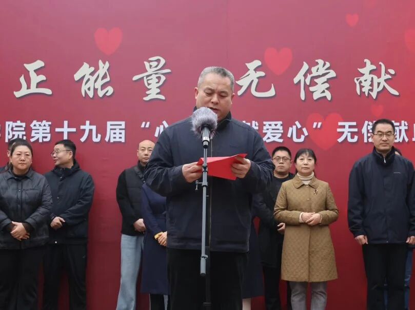 为弘扬无私奉献的人道主义精神,传递青年学子的责任与担当,凝聚校园爱心力量,11月8日,德州职业技术学院顺利举行第十九届“心连心 献爱心”无偿献血活动启动仪式。校党委委员、副院长刘宏杰,德州市中心血站党总支书记、主任刘志强出席活动,学生处、团委相关负责同志、各系党总支书记、学生科科长、献血学生和志愿者参加活动。