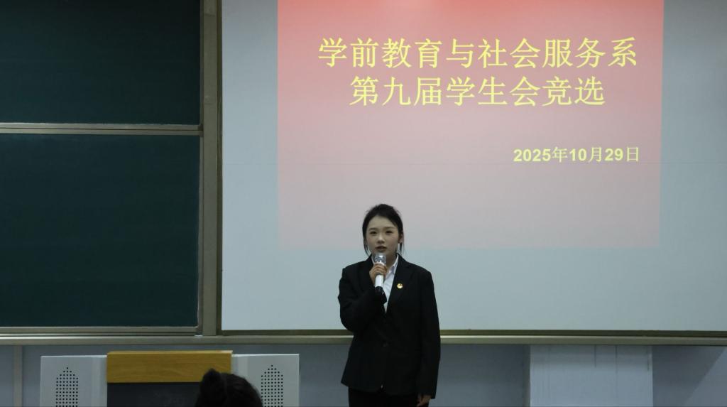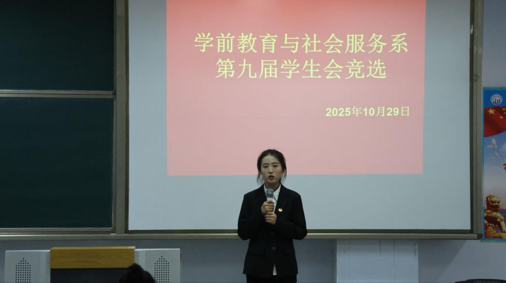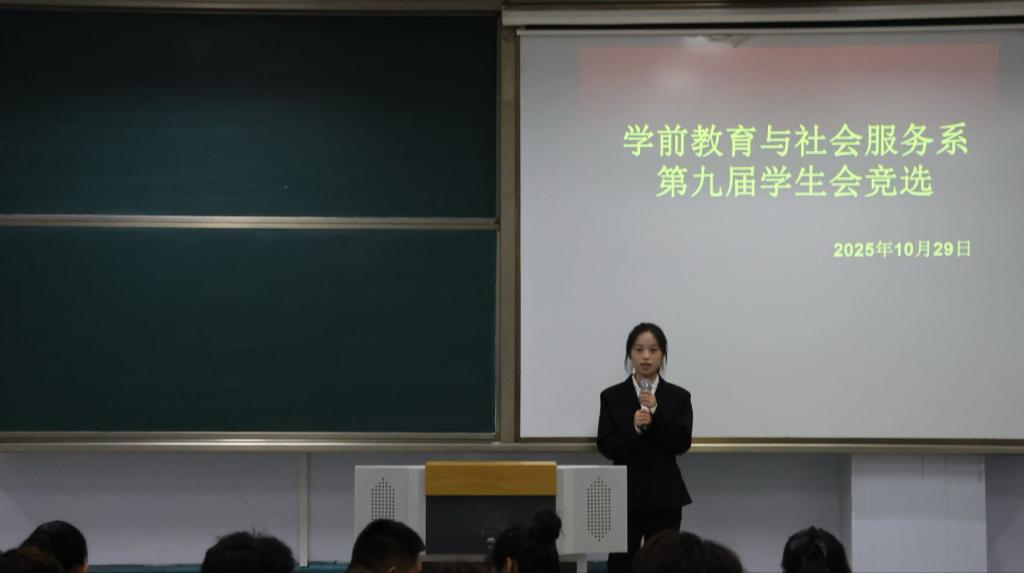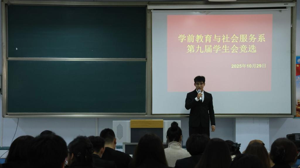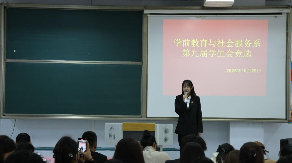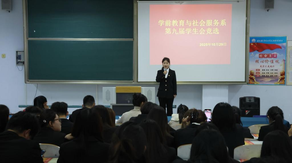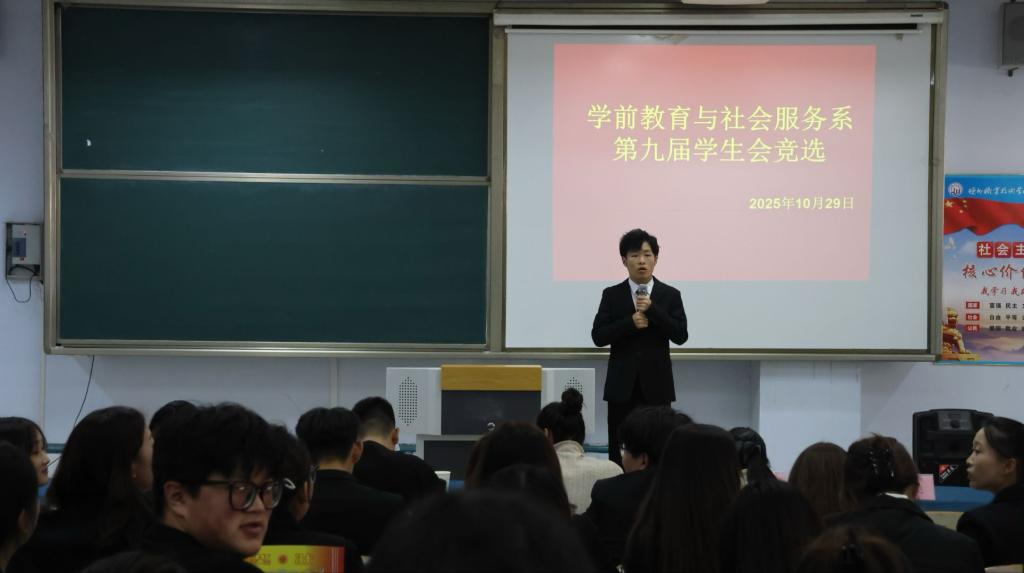 为进一步强化学生干部队伍建设,激发学生主体意识,为学生会注入新生力量,2025年10月29日,学前教育与社会服务系在博学楼C205开展了第九次学生会换届大会暨第九届学生干部选举大会。