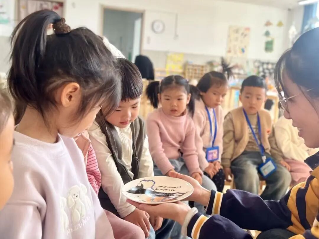 活动现场,志愿者首先带来精心筹备的红绿彩作品展示:釉色明艳的传统瓷瓶、童趣化的彩绘摆件错落陈列,让幼儿园师生直观感受非遗工艺的美学质感;随后以“故事+技艺”的形式,拆解红绿彩“勾线填色、釉色晕染”的基础技法,结合幼儿认知特点,将千年非遗历史转化为生动的趣味讲解;在体验环节,志愿者分组化身“小老师”,手把手指导孩子们握笔勾勒、填充色彩,原本洁白的瓷器在童真创意与传统技法的碰撞中,变成了带着温度的非遗小作品,现场洋溢着文化传承的暖意。这一过程中,既检验了我系师生的专业教学能力,也为幼儿园打造了特色美育活动范例。