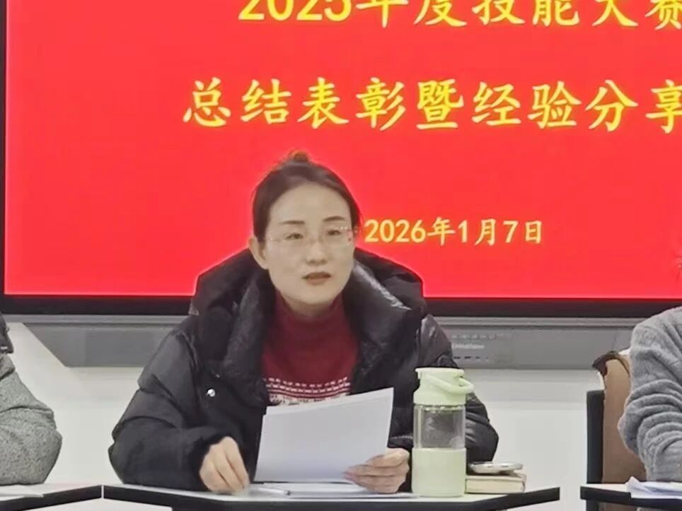 为总结2025年度技能大赛成果,表彰先进典型,传承备赛经验,1月6日与14日下午,学前教育与社会服务系于启智楼SE307召开2025年技能大赛总结表彰暨经验分享大会。会议由学前教育与社会服务系副主任张迎春主持,全体教师及参赛学生代表参会。