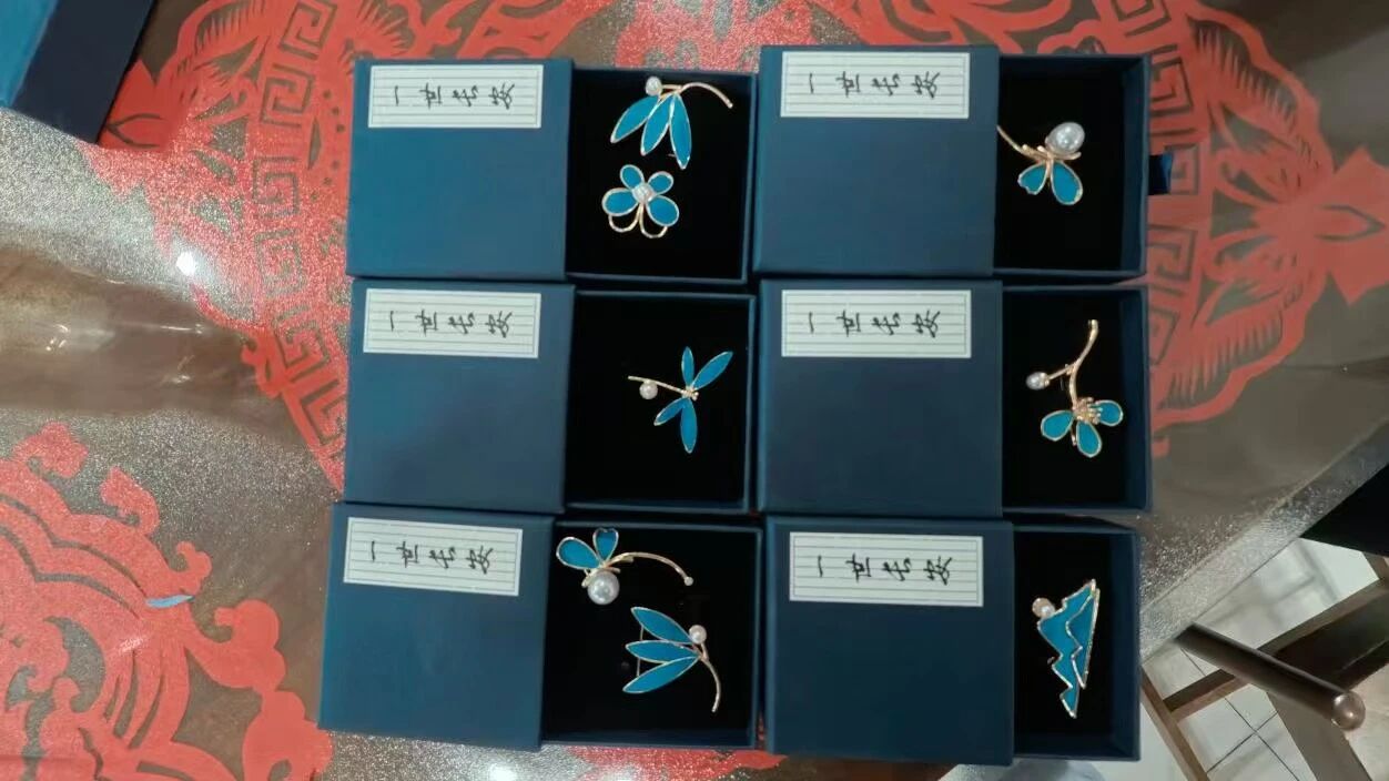 在动手实践环节,大家在老师和志愿者的指导下,认真制作点翠胸针。现场氛围温馨和谐,教职工们专注创作、互相交流,一件件精致典雅的手工作品陆续完成。大家手持作品展示分享,合影留念,脸上洋溢着喜悦与自豪。