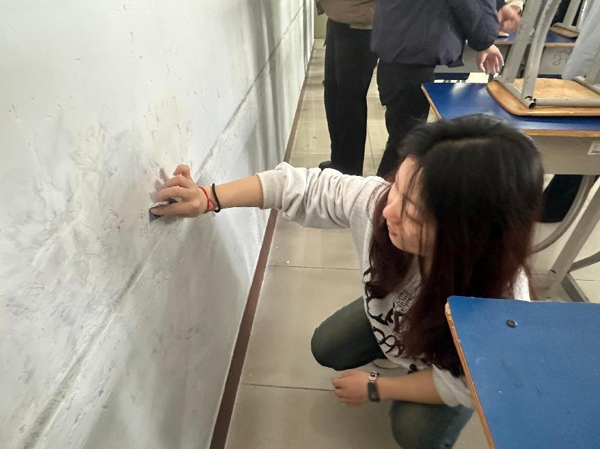 活动开始时,辅导员明确了“无死角、全覆盖、重实效”的工作原则,将任务细化到各班级与责任区域。同学们手持清洁工具,对教室角落、走廊缝隙、楼梯扶手、消防通道等易被忽视的卫生死角进行了清扫,用抹布、铲刀仔细清理了附着在墙面、门框上的小广告与污渍。过程中,大家分工明确、配合默契,不放过任何一处细节,不少同学主动承担起难度较大的清理任务,展现出强烈的集体责任感与奉献精神。活动结束后,学生科辅导员对各区域整治成效进行了全面检查,对表现突出的班级和个人予以肯定,并对后续环境维护工作提出了明确要求。师生们在劳动中收获了整洁的环境,更体会到了集体协作的力量,不少同学表示,将把这份责任感延伸到日常学习生活中。