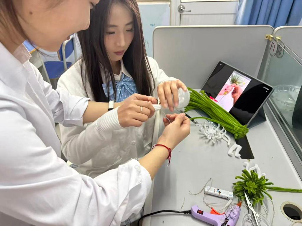 参观与观影之后,同学们并没有停下脚步。大家发挥专业特长,亲手制作了一朵朵白色菊花,每一片花瓣都凝聚着对先烈的哀思与敬意。当素净的白菊整齐摆放在展区前,那份跨越时空的对话愈发深沉。今天的德州,车水马龙、书声琅琅,这和平安宁正是先烈们用生命换来的“续集”。这个清明,我们用脚步丈量历史,用光影触摸热血,更用双手表达敬意。让我们在解放德州的壮阔篇章中,汲取前行的力量——让英雄的精神在青春的血脉中永续流淌,让爱国主义的旗帜在奋斗的征程上高高飘扬。