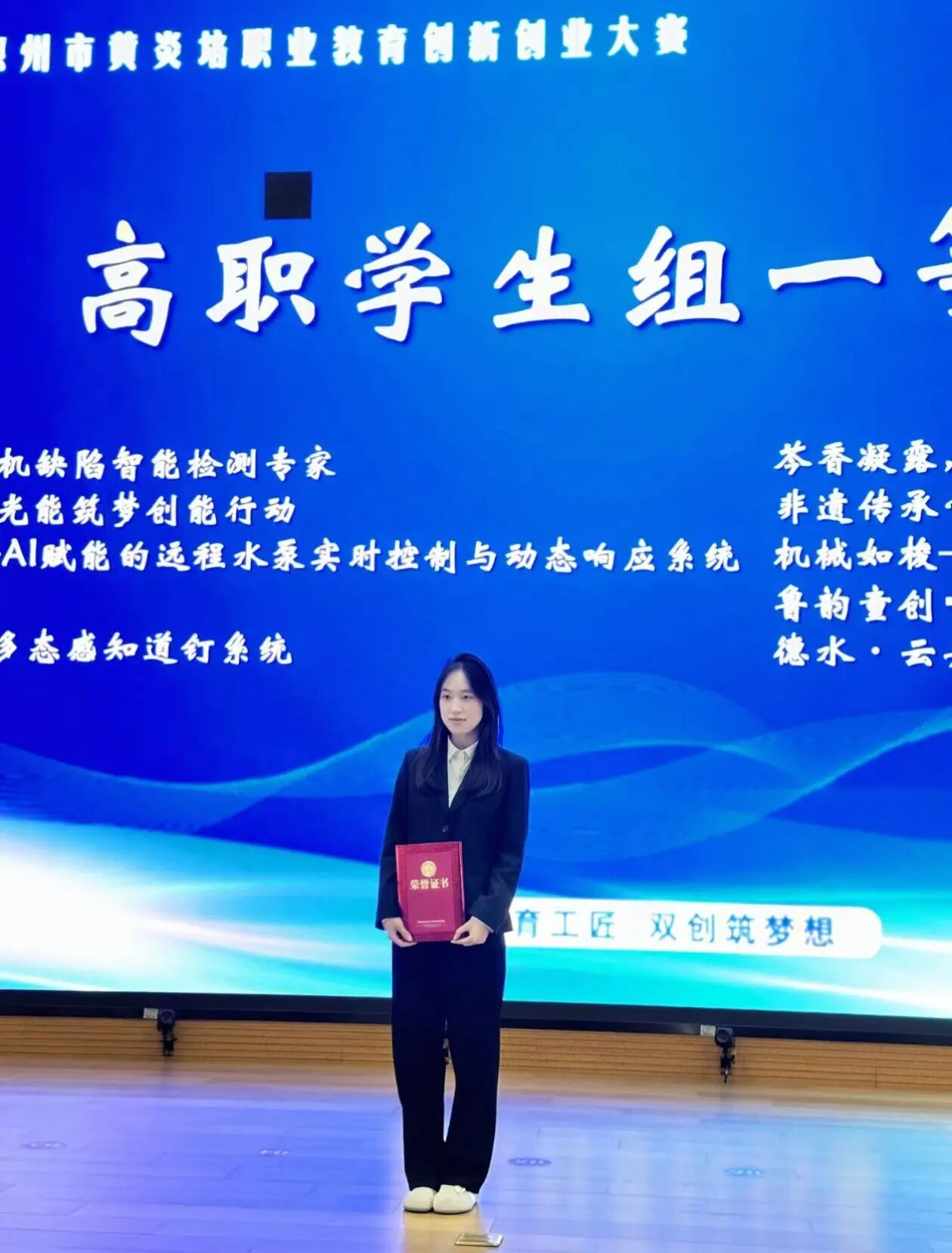 她曾先后获评“优秀学生”“优秀共青团干部”“先进个人”等荣誉称号,用行动诠释着新时代大学生的责任与担当。本学年以来,她积极参加各类文体、创新创业、志愿服务等活动,2024年迎新晚会被评为“优秀演员”称号,2024年元旦晚会被评为“优秀演员”称号,2024年11月在德州职业技术学院第十六届大学生科技文化艺术节“书画展”绘画类比赛中,作品《绘画艺术》荣获“二等奖”,2025年在“青春为祖国歌唱”德州市高校大学生合唱展演活动中,工作积极,表现优异,被评为“优秀工作者”,2025年第九届山东省黄炎培职业教育创新创业大赛“三等奖”,2025年第二届德州市黄炎培职业教育创新创业大赛中获得“一等奖”,2025年iCAN大学生创新创业大赛“二等奖”等20多项荣誉。