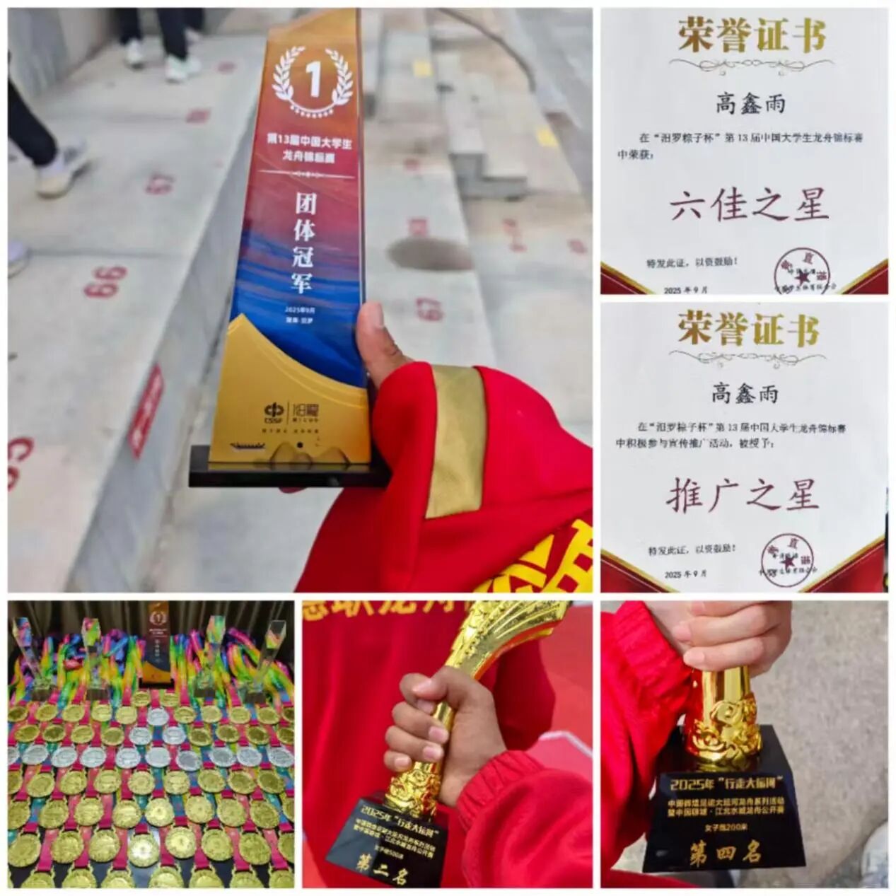 15.2025年9月,在汨罗“粽子杯”第十三届中国大学生龙舟锦标赛获评“推广之星”、“六佳之星”。