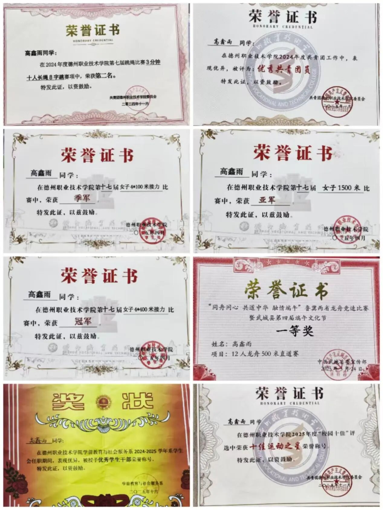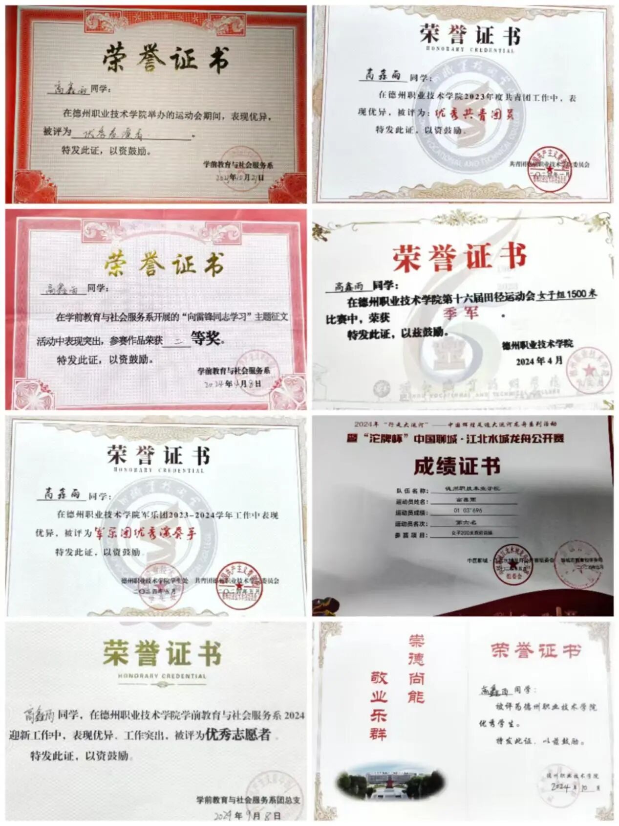 8.2024年10月,获评德州职业技术学院“优秀学生”。