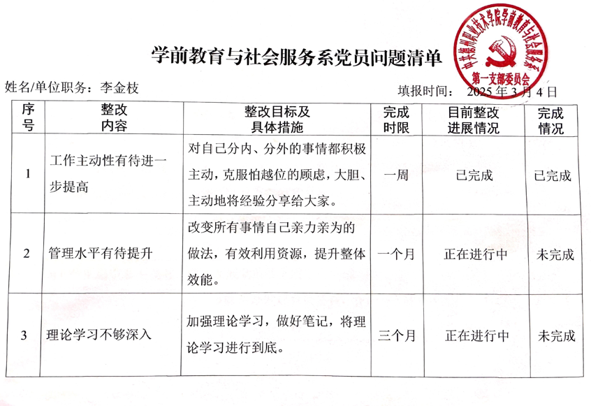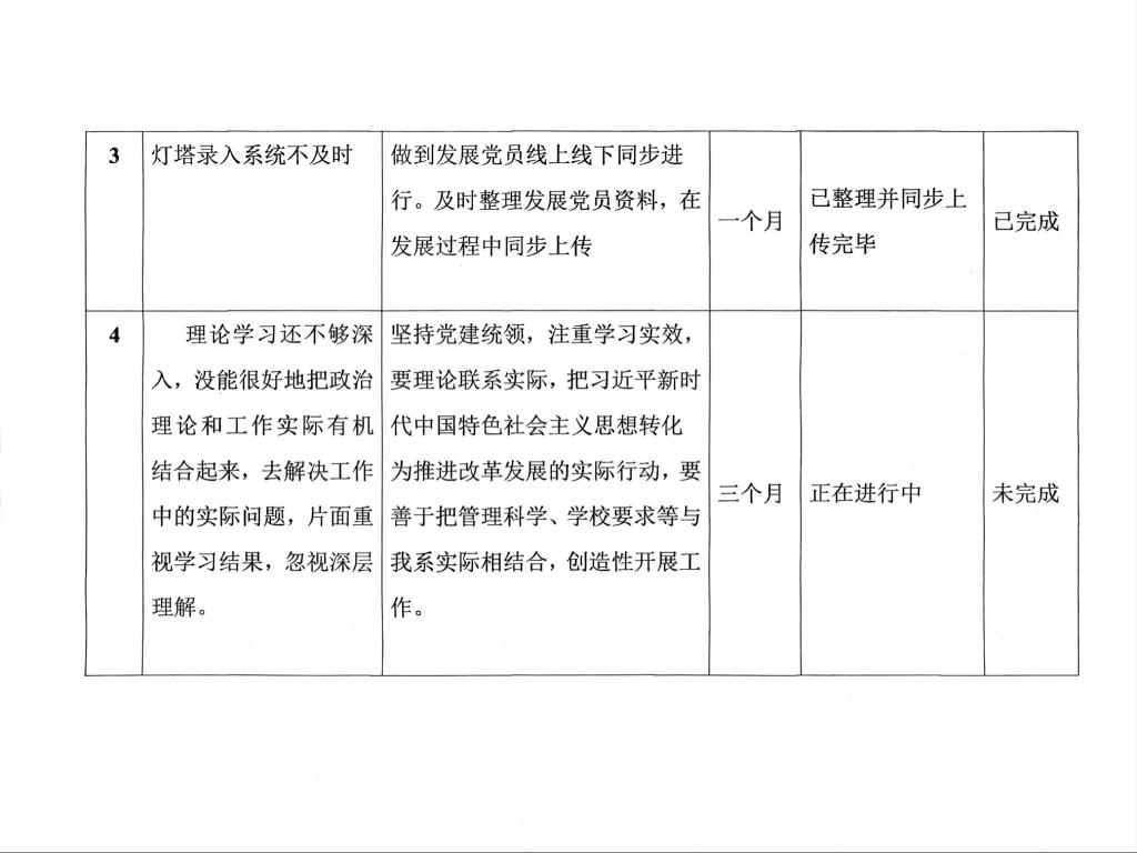 为深入学习贯彻习近平新时代中国特色社会主义思想,学习宣传贯彻党的二十届四中全会精神,根据《中国共产党章程》,《中国共产党基层组织选举工作条例》,针对查摆和评议出的问题党支部委员会列出整改清单,现将整改情况公示如下:
