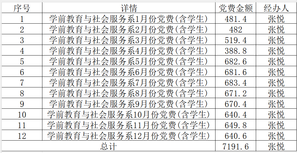 学前教育与社会服务系2025年度党费缴纳情况公示